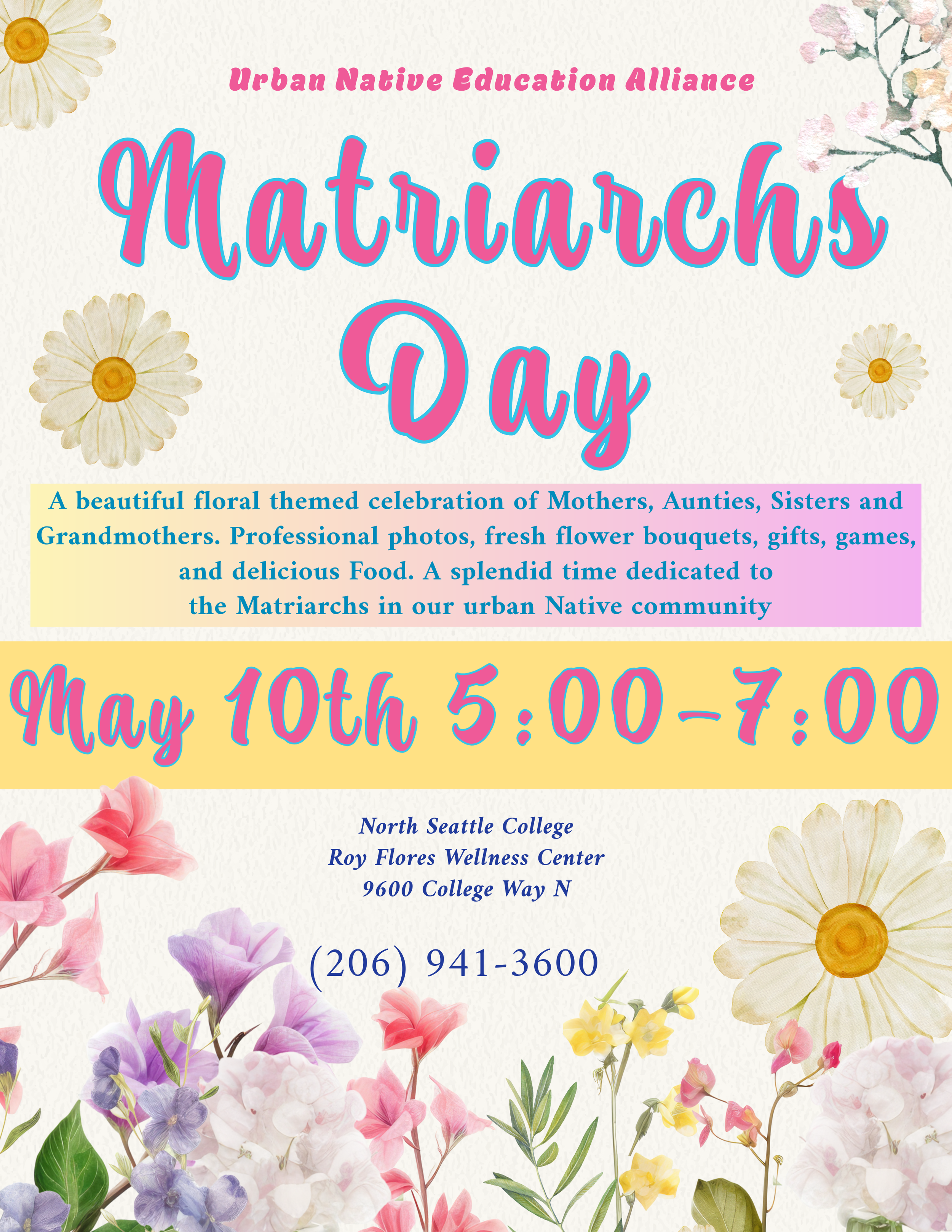 🌸 Matriarchs Day Sunday, May 10 | 5:00 to 7:00 PM North Seattle College, Roy Flores Wellness Center 9600 College Way N